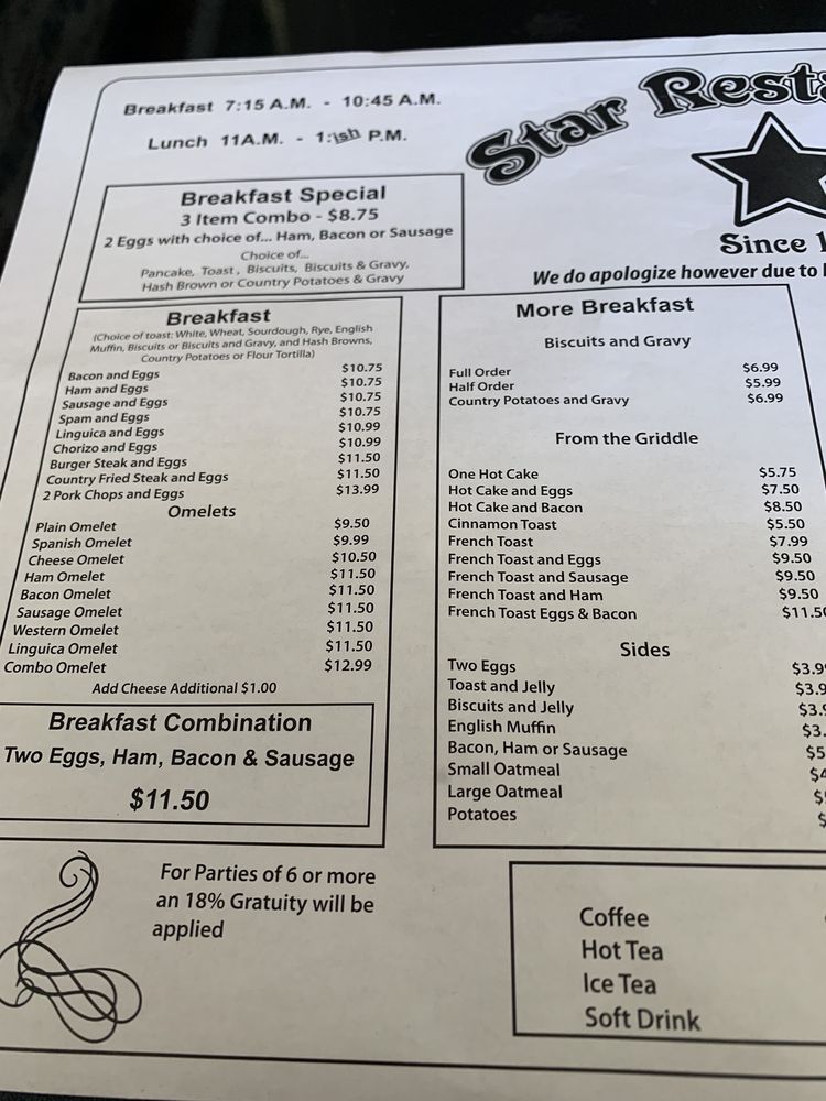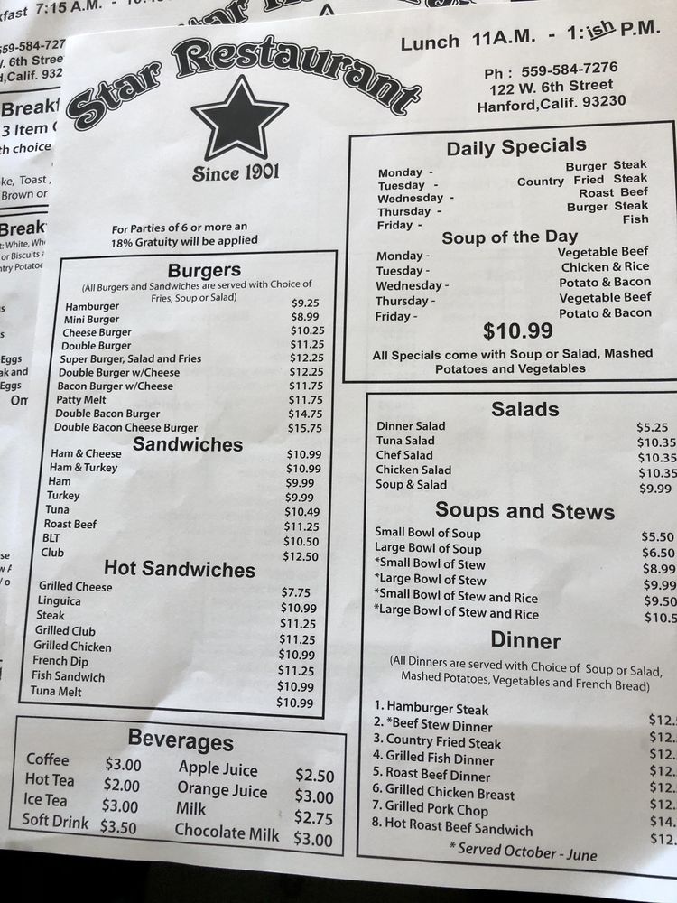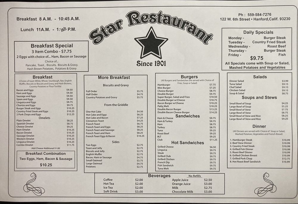 Star Restaurant Hanford Menu (Update 2025)